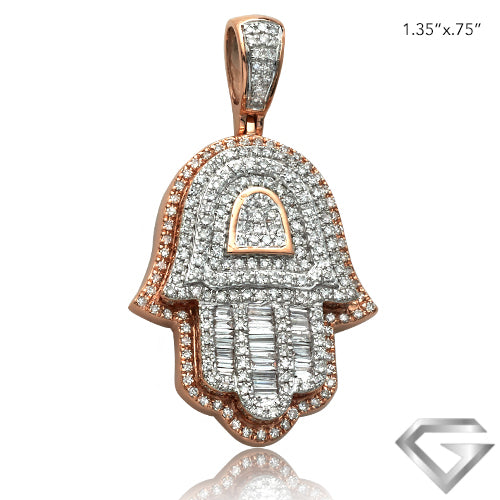 14K Rose Gold 1.00ctw Diamond Hamza Pendant - Baguette Diamond Fingers