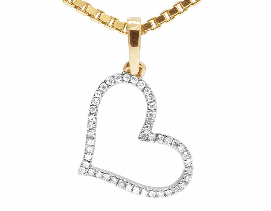 14K Yellow Gold One Row Diamonds Heart Pendant Box Chain 0.12ct