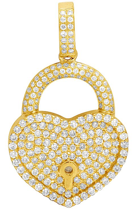 Diamond Heart Lock 1.5 Ct Pendant in 10K yellow Gold 1.5"