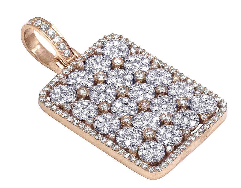 Two-Tone Diamond Flower Cluster Rectangle Dogtag Pendant 1.6" 5 CT