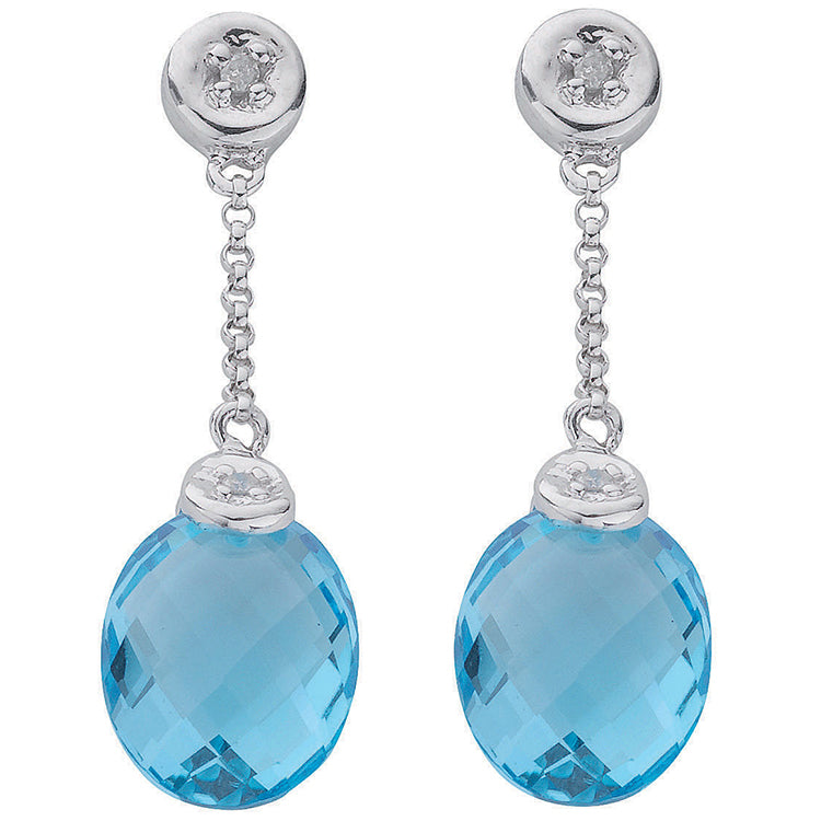 9ct White Gold 0.04ct Diamond & 6.93ct Blue Topaz Drop Earrings