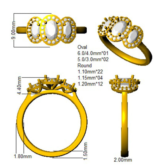 3 Oval Blue Sapphire 1.23ct