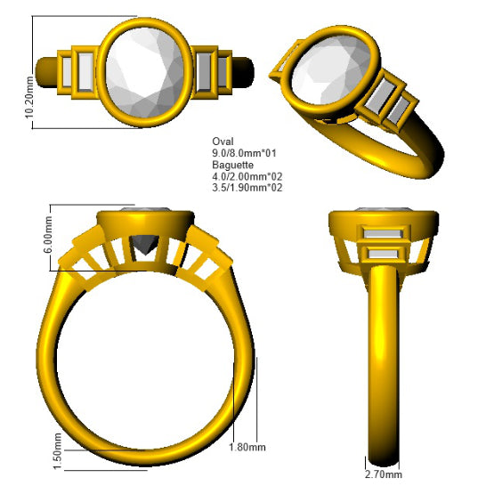 4 Baguette Diamond 0.38ct G-SI2