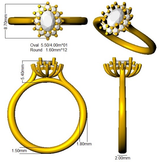 1 Oval Diamond 0.38ct G-SI2