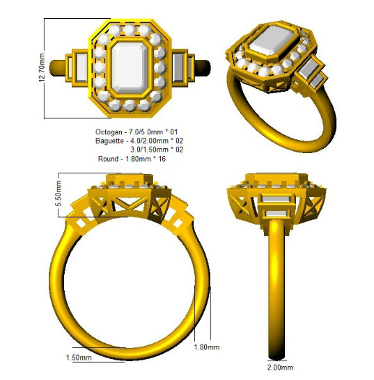 4 Baguette Diamond 0.23ct G-SI1