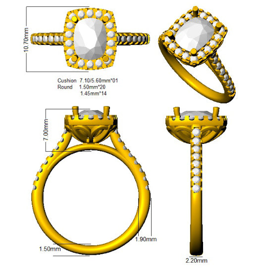 1 Cushion Yellow Diamond 1.5ct