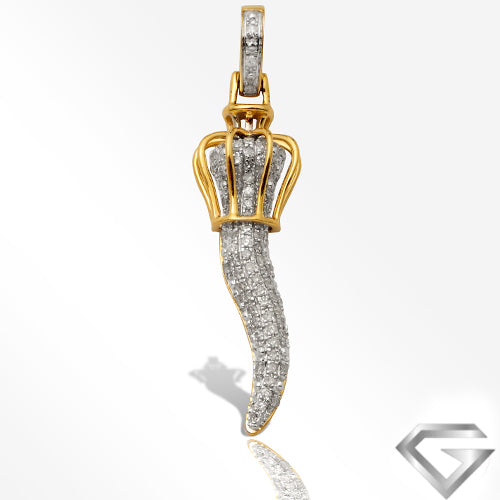 10K Yellow Gold 0.55ctw Diamond Italian Horn Pendant With Puffed Crown