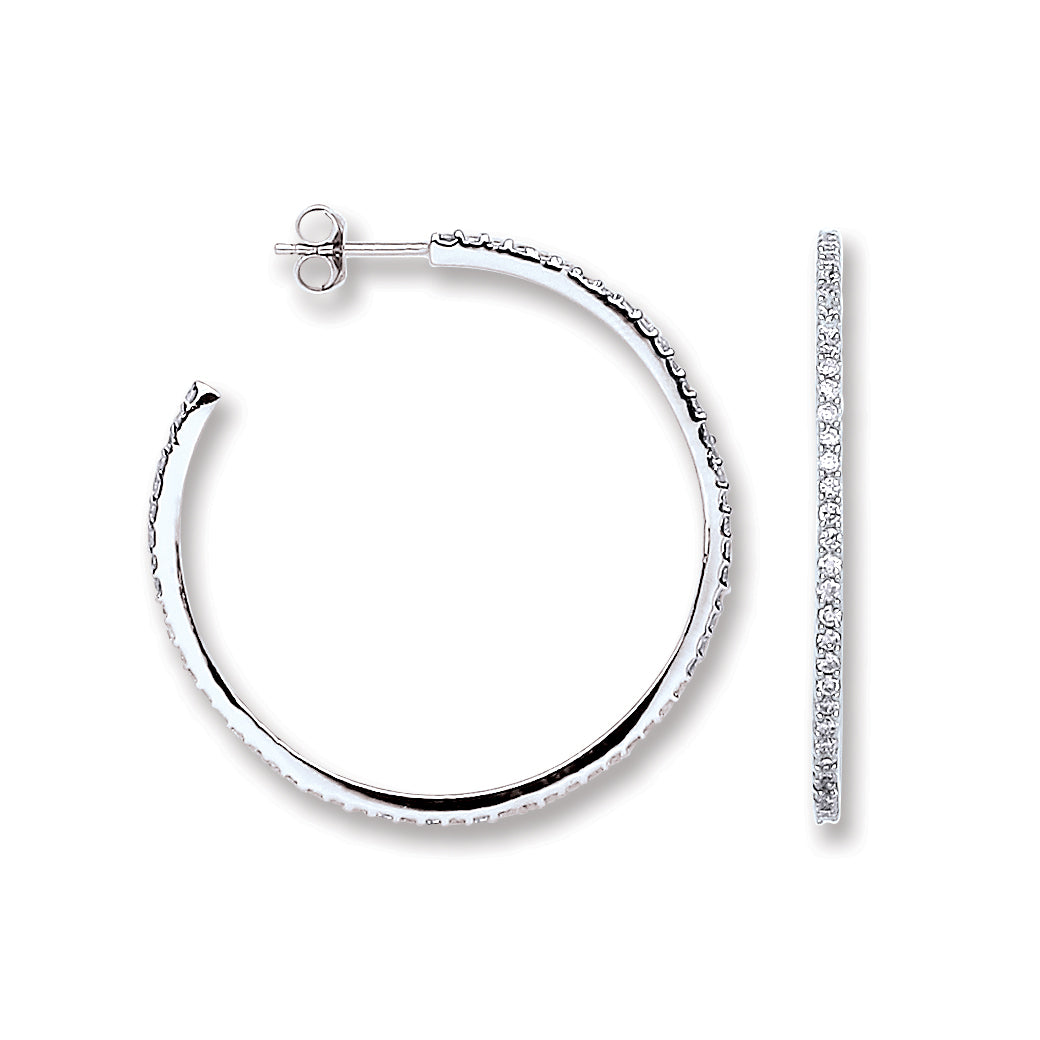 Silver Cubic Zirconia Round Hoop Earrings