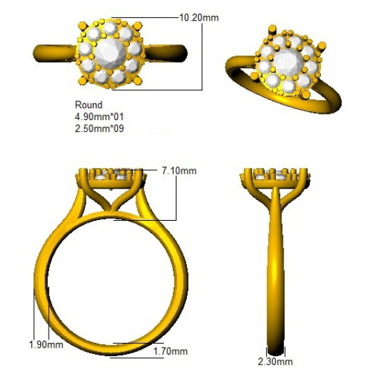 10 Round Diamond 1.03ct G-SI2